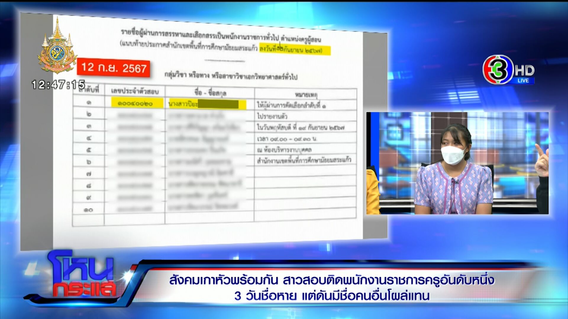ครูเบญ ร่ำไห้ใจสลาย สอบติดอันดับ 1 แต่ 3 วันชื่อหาย ท้าเปิดข้อสอบ ผอ.สพฐ.สระแก้วโฟนอินแจงแล้ว ยันประกาศชื่อผิด