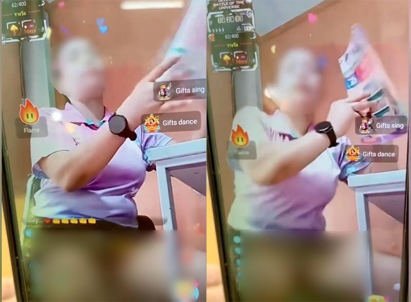 ปรากฏว่าระหว่างที่ไลฟ์สอนหนังสือ ครูได้นั่งอ้าขาหันหน้ามาทางกล้องที่กำลังไลฟ์อยู่ ทำให้กระโปรงร่นขึ้นไปจนเห็นหว่างขา ซึ่งมีคนเข้ามาส่งรางวัลให้เป็นจำนวนมาก