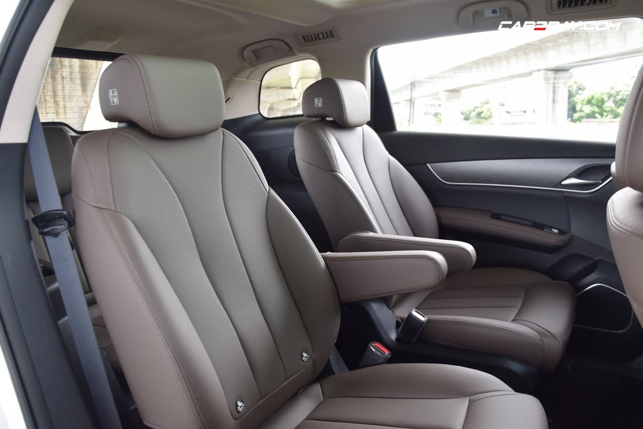 สเปกไทยมาแบบ 3 ตอน 6 ที่นั่งแบบ 2+2+2 พร้อมโทนสีน้ำตาลอ่อนในส่วนของเบาะนั่ง 6 ที่นั่ง เด่นด้วยเบาะนั่งสีน้ำตาลอ่อนคู่หน้าปรับไฟฟ้าฝั่งคนขับ 6 ทิศทางและคนนั่ง 4 ทิศทางพร้อมเบาะเย็นคู่หน้า เบาะนั่งตอนที่ 2 มาแบบอิสระ หรือ Captain Seat พร้อมที่ท้าวแขนปรับเอนได้เลื่อนได้และตอนที่ 3 สามารถพับเก็บได้แบบ 50:50 เพื่อเพิ่มพื้นที่ในการขนสัมภาระ แบบ 580 ลิตร แต่ถ้าไม่พับเบาะจะมีพื้นที่ 180 ลิตร พร้อมช่องเก็บของคราวนี้ตัดยางอะไหล่ออกไปมาพร้อมชุดอุปกรณ์ปะยางฉุกเฉินมาให้