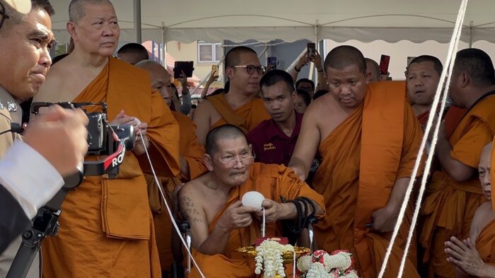 เลขเจนี่ เทียนโพธิ์สุวรรณ บวงสรวงเหรียญรุ่น พระนาค ๕ พระองค์ ปลุกเสก โดย หลวงปู่ศิลา ส่องหมายเลขบนกล่อง 911
