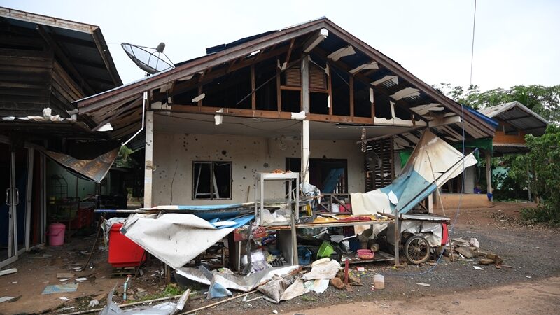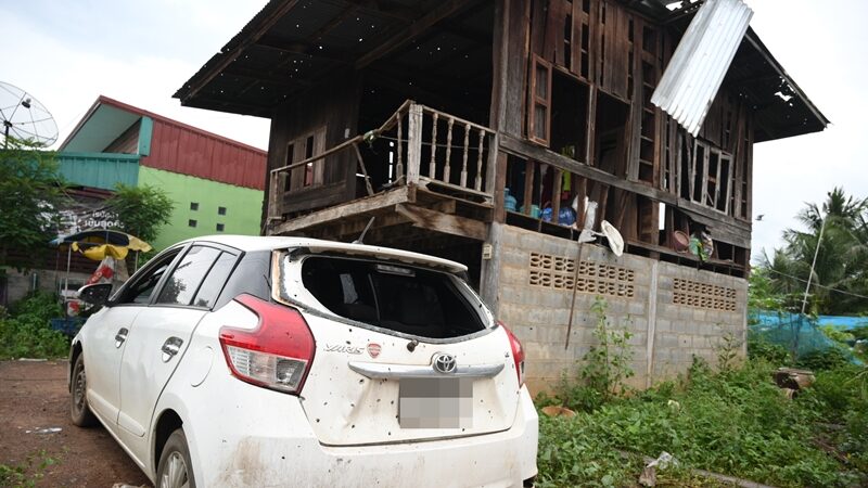 เปิดภาพความเสียหาย บ้านเรือนประชาชน หลังโดนกระสุนปืนใหญ่เขมรโจมตี