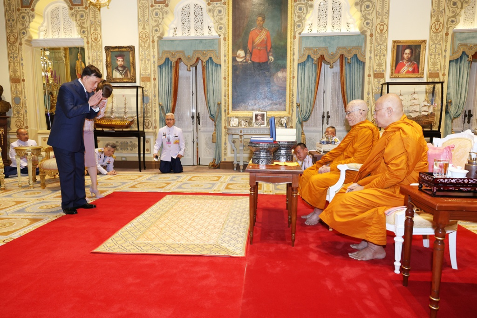 วันที่ 16 มิ.ย.68 เวลา 18.04 น. พระบาทสมเด็จพระเจ้าอยู่หัว และสมเด็จพระนางเจ้า ฯ พระบรมราชินี เสด็จออก ณ พระที่นั่งอัมพรสถาน พระราชวังดุสิต พระราชทานพระบรมราชวโรกาสให้ สมเด็จพระอริยวงศาคตญาณ สมเด็จพระสังฆราช สกลมหาสังฆปริณายก พร้อมด้วยคณะ เฝ้า และเฝ้าทูลละอองธุลีพระบาท ถวายเหรียญพระบรมรูปพระบาทสมเด็จพระเจ้าอยู่หัว เนื่องในโอกาสพระราชพิธีมหามงคลเฉลิมพระชนมพรรษา 6 รอบ 28 กรกฎาคม 2567 เนื้อทองคำ และเนื้อเงิน แด่ พระบาทสมเด็จ