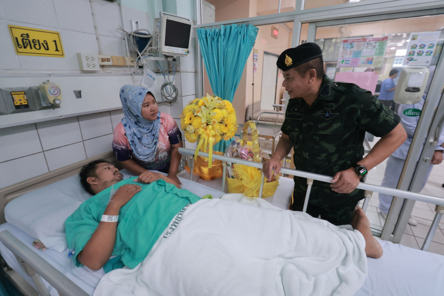 แม่ทัพภาคที่ 4 เยี่ยมให้กำลังใจผู้บาดเจ็บจากเหตุลอบวางระเบิดบริเวณใกล้ฐานปฏิบัติหมวดเฉพาะกิจตำรวจนราธิวาส 9322 บ้านบือแนแล