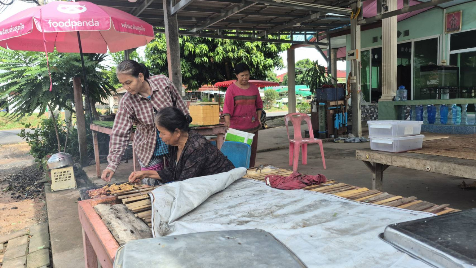 จากนั้นทีมข่าวได้ลงพื้นที่สำรวจบรรยากาศในหมู่บ้าน ก็พบว่า พ่อค้าแม่ค้าและชาวบ้านหลายคน ที่เคยนำสินค้าอุปโภคบริโภค และผลผลิตทางการเกษตร ไปขายที่จุดผ่อนปรนช่องสายตะกู ก็เริ่มปรับตัวหันมาตั้งโต๊ะขายหน้าบ้านของตัวเองให้กับชาวบ้านในหมู่บ้าน และผู้คนที่ผ่านไปมา แม้จะขายไม่ค่อยดีเหมือนที่จุดผ่อนปรนช่องสายตะกู แต่ก็จำเป็นต้องปรับตัวให้เข้ากับสถานการณ์เพื่อความอยู่รอด