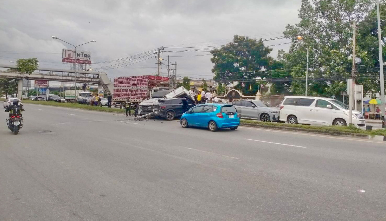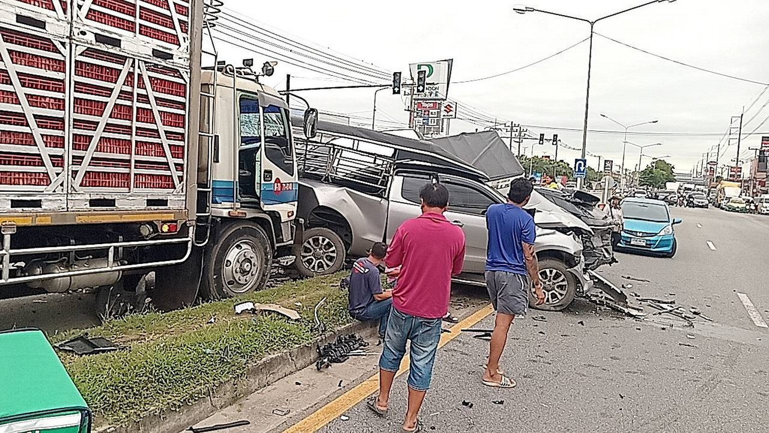 นักเรียนหวิดเจอโศกนาฏกรรมหมู่หลังสิบล้อบรรทุกไก่เบรกแตกชนวินาศ 8 คันรวด