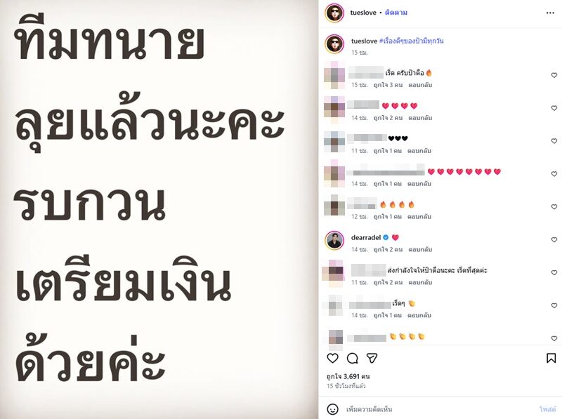 อ่านข่าวต้นฉบับได้ที่ : ป้าตือ ลั่นทีมทนายลุยแล้ว รบกวนเตรียมเงินด้วย คอมเมนต์รัวส่งกำลังใจเริ่ด