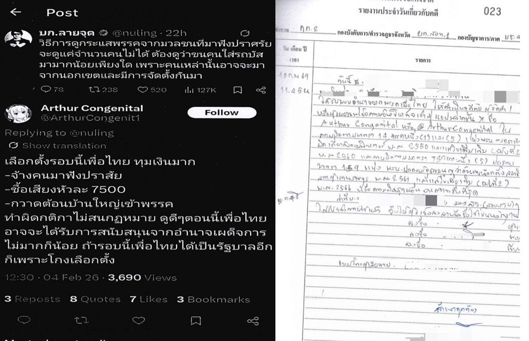 เพื่อไทย ลุยฟ้องเฟกนิวส์ ซื้อเสียง 7,500 จ้างคนปราศรัย ใส่ร้ายพรรคเสียหาย ย้ำวิจารณ์ต้องอยู่บนข้อเท็จจริง วอนระมัดระวังการเผยแพร่ข้อมูลเท็จ