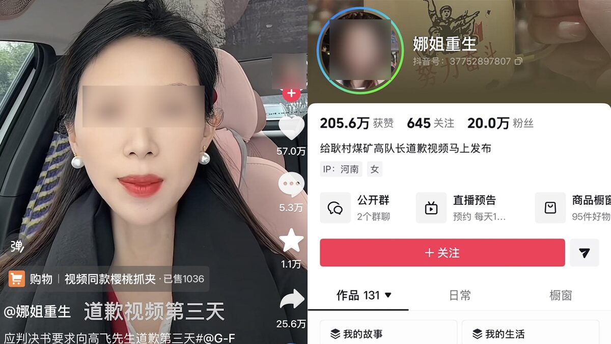 เมื่อวันที่ 12 มกราคม เธอโพสต์คลิปขอโทษคลิปแรกผ่านโตวอิน โดยเล่าเรื่องการนอกใจของสามี และกล่าวขอโทษตามคำสั่งศาล คลิปได้รับความสนใจจากชาวเน็ตอย่างล้นหลาม มียอดกดไลก์กว่า 630,000 ครั้ง