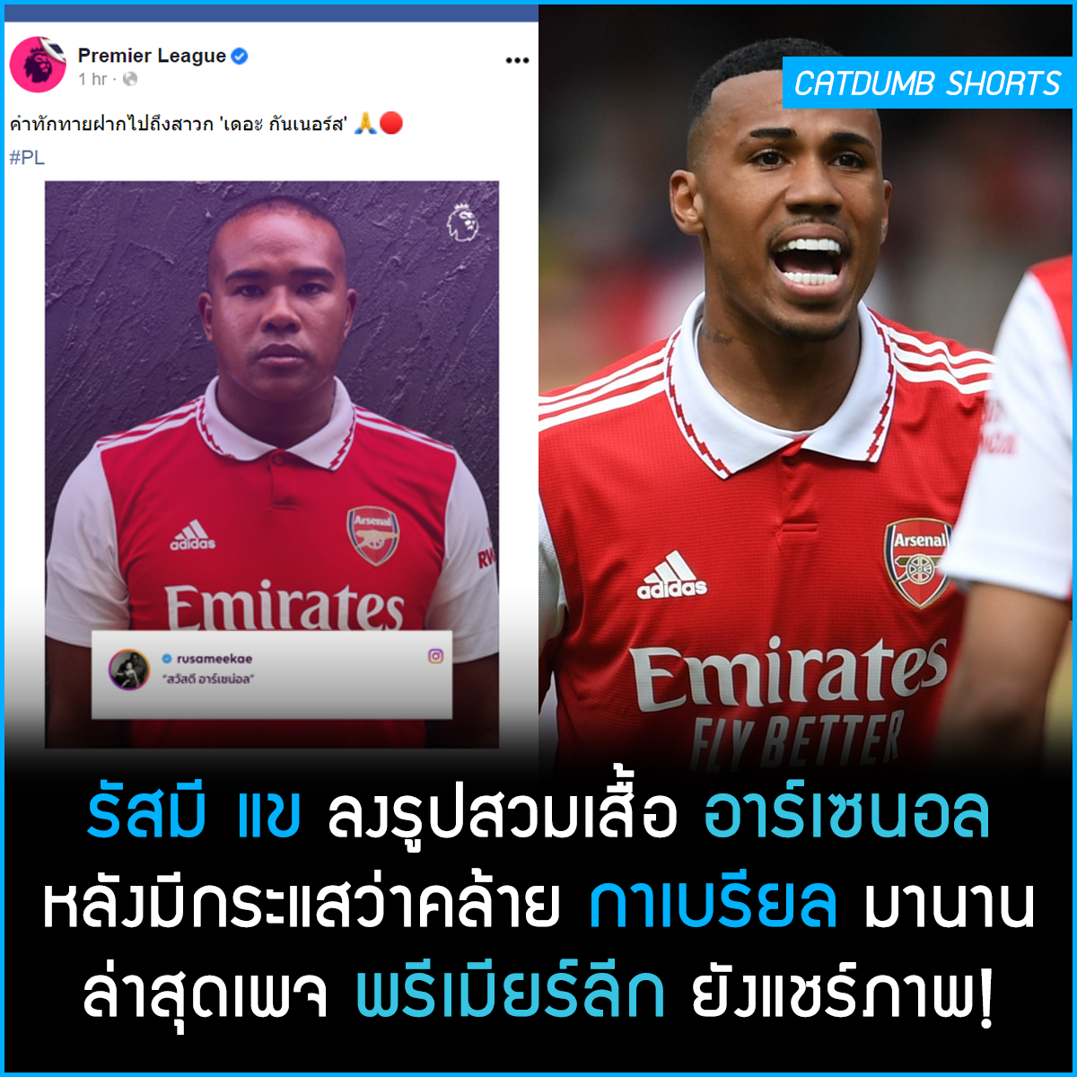 รัสมี แข ลงรูปสวมเสื้ออาร์เซนอล หลังโดนทักว่าเหมือน กาเบรียล มานาน ล่าสุดเพจ พรีเมียร์ลีก ยังแชร์ภาพ!