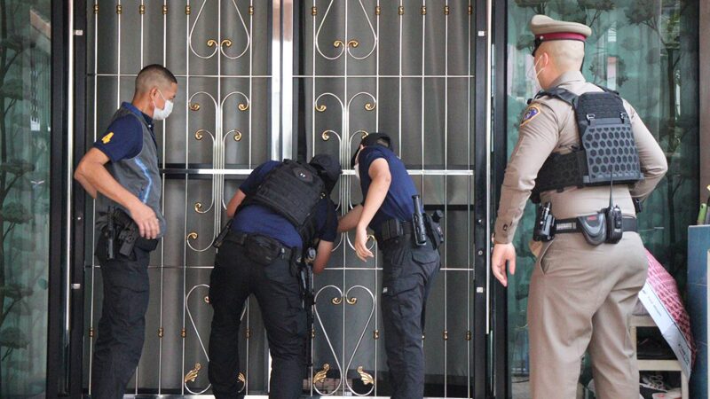 โดยเป้าหมายจุดสำคัญอยู่ที่บ้านเลขที่ 111/278, 111/284 ตั้งอยู่ภายในซ.ลาซาล 32 แขวงบางนาใต้ เขตบางนา กทม. บ้านพักของ นายธนณัฐ มรกฏ หนึ่งในคีย์แมนคนสำคัญระดับแถว 2 ของ เครือข่าย“สารวัตรซัว” ที่คอยทำหน้าที่บริหารจัดการเงินที่ได้จากการทำธุรกิจเว็บพนันออนไลน์ อย่างไรก็ตามจากการตรวจค้นภายในบ้านทั้งสองหลังไม่พบตัว นายธนณัฐ แต่อย่างใด ซึ่งขณะนี้อยู่ระหว่างให้คนใกล้ชิดประสานติดต่อให้เข้ามอบตัวกับทางเจ้าหน้าที่