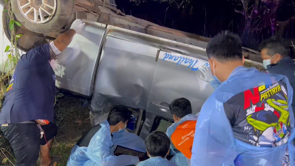 ที่บริเวณแขนซ้าย ต่อมากำลังเจ้าหน้าที่กู้ภัยฯ ได้ช่วยกันผลักรถกระบะให้พลิกกลับขึ้นก่อนช่วยนำร่างผู้เสียชีวิตออกมาจากใต้ซากได้สำเร็จ