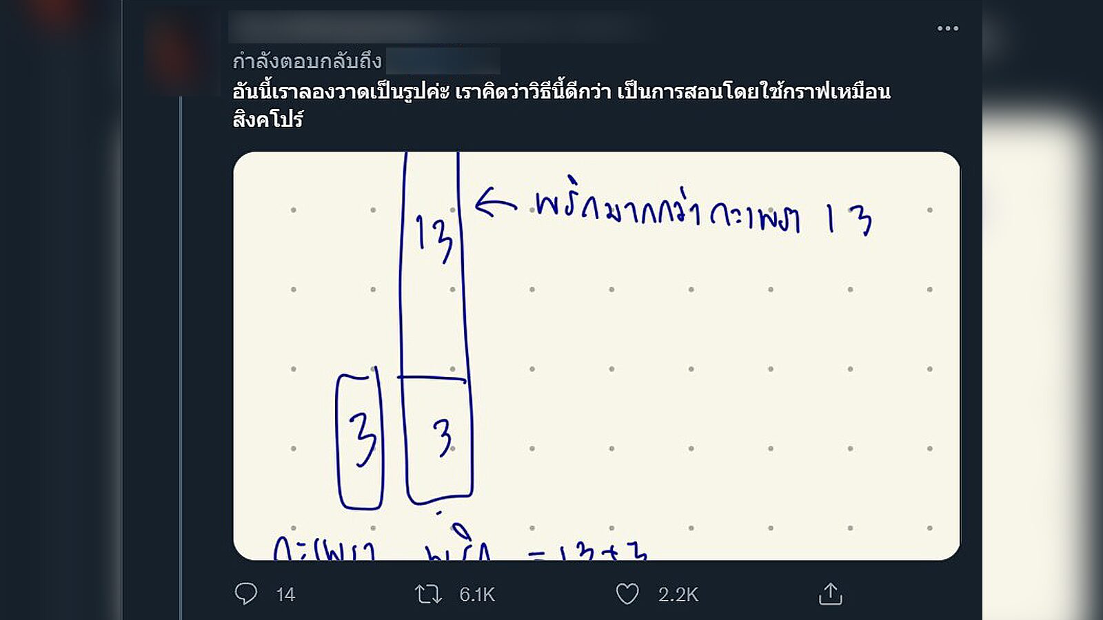 ต่อมามีชาวเน็ตได้ลองเสนอวิธีการคิดแบบต่าง ๆ ทั้งการวาดภาพและสมการ เพื่อให้เข้าใจโจทย์ได้ง่ายมากขึ้น ซึ่งผลลัพธ์ที่ได้คือ นักเรียนคิดเลขถูกแล้ว