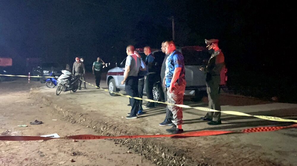 ที่เกิดเหตุ เจ้าหน้าที่กำลังช่วยเหลือลำเลียงผู้เสียชีวิตและผู้บาดเจ็บส่ง รพ.หาดสำราญ เพื่อพยายามยื้อชีวิต ตรวจสอบบนพื้นดิน พื้นปูน รวมทั้งบนเก้าอี้ หน้าร้านค้าดังกล่าว พบกองเลือดจำนวนมากเจิ่งนองอยู่ ส่วนผู้เสียชีวิตทราบชื่อคือ นายเขียน (สงวนนามสกุล) อายุ 57 ปี สมาชิกอาสารักษาดินแดน หรือ อส.หาดสำราญ ถูกแทงด้วยอาวุธมีดพกเข้าที่เหนือสีข้างขวา 1 แผล ไหล่ขวา 1 แผล หูซ้ายติ่งหูขาด 1 แผล และหลังใบหูซ้ายอีก 1 แผล รวมทั้งหมด 4 แผล