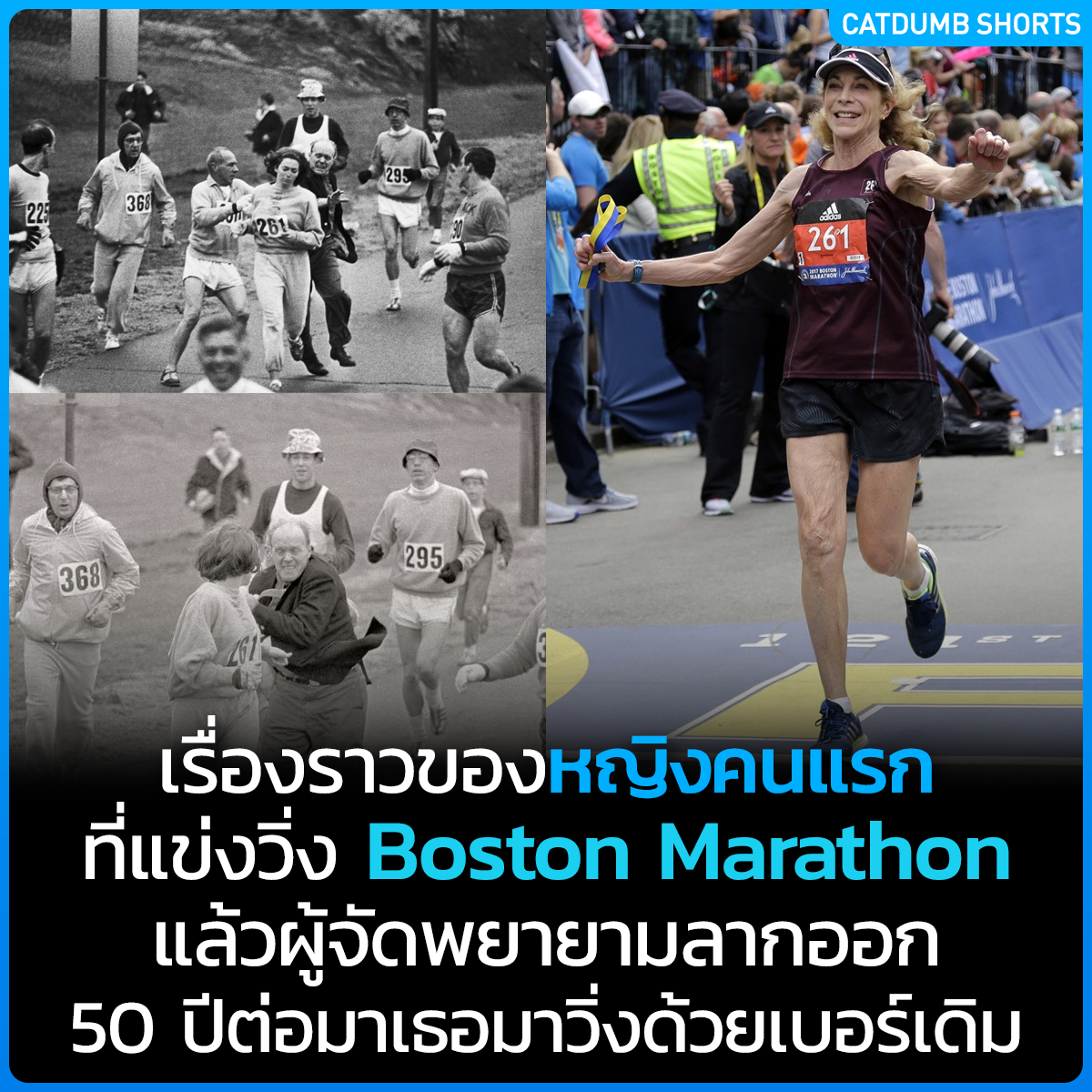 เรื่องราวของหญิงคนแรกที่แข่งวิ่งบอสตันมาราธอน แล้วผู้จัดพยายามลากออก 50 ปีต่อมาเธอมาวิ่งด้วยเบอร์เดิม