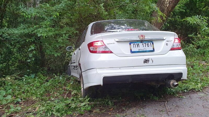 ที่เกิดเหตุเป็นถนนที่ผ่านเข้าป่าเขตรักษาพันธุ์เขาอ่างฤาไน พบรถเก๋งฮอนด้าซิตี้ สีขาว ทะเบียน กท 1761 สระแก้ว สภาพหน้าทิ่มอยู่ริมถนนโคนต้นไม้ใหญ่ ตัวถังฝั่งหน้าขวายุบ มีนายทศพล อายุ 23 ปี เป็นคนขับบาดเจ็บเล็กน้อย อยู่ในอาการตกใจ ขณะที่คุณยาย อายุ 76 ปีนั่งอยู่ด้านหน้าซ้ายอาการสาหัส เจ้าหน้าที่รีบทำซีพีอาร์ปั๊มหัวใจก่อนนำส่งรพ. แต่เสียชีวิตระหว่างทาง