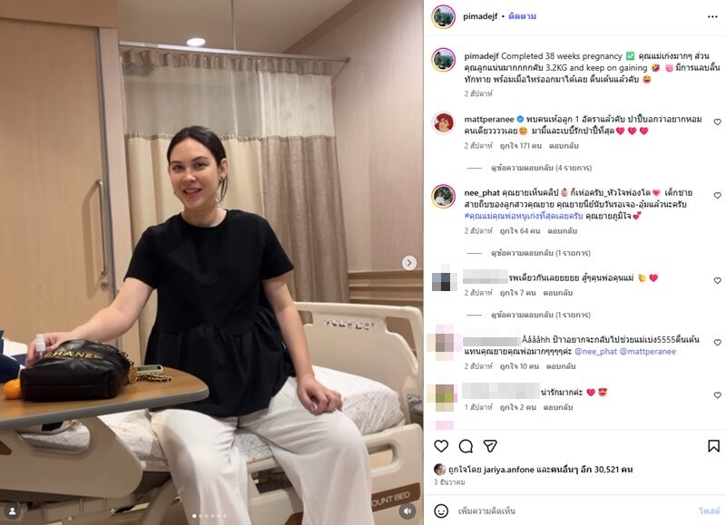 “Completed 38 weeks pregnancy คุณแม่เก่งมากๆ ส่วนคุณลูกแน่นมากกกกคับ 3.2KG and keep on gaining มีการแลบลิ้นทักทาย พร้อมเมื่อไหร่ออกมาได้เลย ตื่นเต้นแล้วคับ” ทั้งคุณแม่และคุณยายก็เข้ามาคอมเมนต์กันตื่นเต้นมากๆ แทบจะรอไม่ไหวอยากจะต้อนรับสมาชิกตัวน้อย