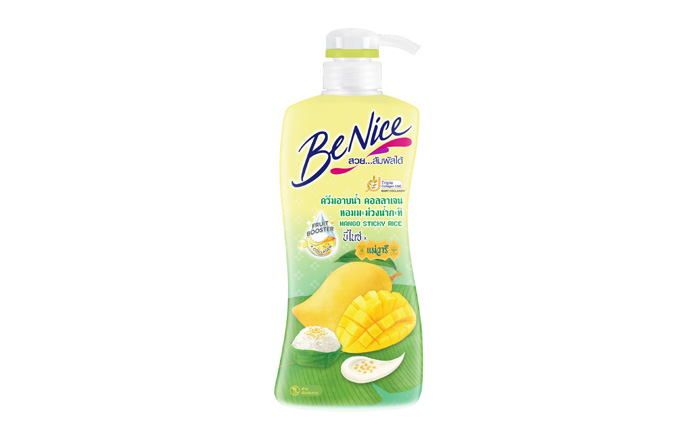 นอกจากกลิ่นหอมหวานละมุนสุดฟินแล้ว BeNice Mango Sticky Rice ยังอัดแน่นไปด้วยสารสกัดบำรุงผิวแบบจัดเต็ม เสิร์ฟผิวสวยครบจบในขวดเดียว ทั้งเซรั่มสกัดจากผลไม้เข้มข้น Fruit Booster และ Collagen ที่ช่วยเพิ่มความชุ่มชื้นให้ผิวดูเนียนนุ่มน่าสัมผัส เสริมด้วย Vitamin Complex Care วิตามินเข้มข้น ผสานโอเมก้า 3-6 บำรุงล้ำลึก เติมความชุ่มชื้นให้ผิวดูอิ่มน้ำ ดูอ่อนเยาว์ และเทคโนโลยี 7X Bright จาก Nano White นวัตกรรมกู้ผิวหมองคล้ำ ปรับสีผิวให้ดูสว่าง กระจ่างใสขึ้นอย่างเป็นธรรมชาติ