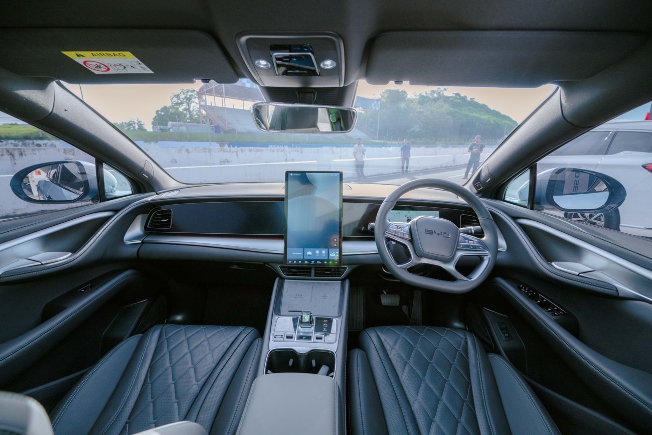 หรูหราอย่างน่าประหลาดใจด้วยการดีไซน์มีความคล้ายกับ BYD QIN L ด้วยดีไซน์คอนโซลหน้าหุ้มหนังสัมผัส พวงมาลัยมัลติฟังก์ชันสี่ก้านแบบท้ายตัด ติดตั้งมาตรวัดความเร็ว 10.25 นิ้ว จอสัมผัสขนาดใหญ่ 15.6 นิ้ว สามารถหมุนจอได้ทั้งแนวนอนและแนวตั้ง ระบบเชื่อมต่อเครือข่าย DiLink รองรับการอัปเดตในรูปแบบ OTA เช่นเดียวกับสมาร์ทโฟน พร้อมจอแสดงข้อมูลการขับขี่ HUD 50 นิ้ว ลำโพง Dynaudio 12 จุด ไฟสร้างบรรยากาศ Ambient Light มากถึง 128 สี ระบบกุญแจ NFC ที่ชาร์จมือถือไร้สาย หัวเกียร์คริสตัลรอบๆคันเกียร์รายล้อมด้วยปุ่มควบคุมการทำงานของจอสัมผัส และช่องเก็บของหลายจุดสามารถวางแก้วน้ำ ช่องเก็บของหลายจุด มาพร้อมที่วางแก้วขนาดใหญ่ 2 จุด พอร์ตชาร์จ USB Type C 2 จุด และ Type A 2 จุด แท่นชาร์จมือถือไร้สายสองช่อง