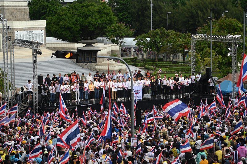 ต่อมา นายสนธิ ลิ้มทองกุล ปราศรัยเรียกร้องให้นางสาวแพทองธาร ชินวัตร นายกรัฐมนตรีคนปัจจุบัน ลาออกจากตำแหน่ง หลังจากนั้นก็มีเสียงปรบมือ และมีเสียงขับไล่ว่า “ออกไป ออกไป”