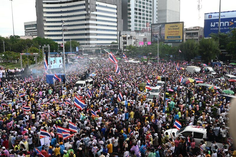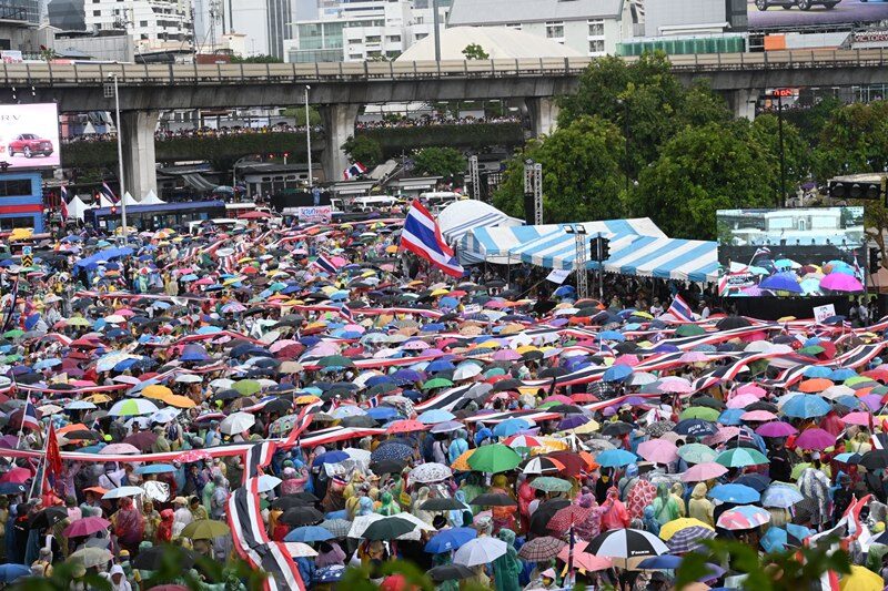 ต่อเจ้าหน้าที่ตำรวจอัปเดตยอดผู้ชุมนุมว่ามีมากกว่า 20,000 คน ซึ่งถือเป็นจำนวนที่เพิ่มขึ้นอย่างรวดเร็วจากช่วงบ่าย โดยเฉพาะเมื่อฝนหยุดตกในช่วงเย็น ผู้คนยังคงเดินทางสมทบไม่ขาดสาย กลุ่มผู้ชุมนุมมีการแสดงสัญลักษณ์ทางการเมือง ทั้งการชูป้าย ขับร้องเพลง และฟังปราศรัยจากเวทีหลัก ท่ามกลางการดูแลอย่างเข้มงวดของเจ้าหน้าที่ตำรวจที่ตั้งจุดคัดกรอง 5 จุดรอบพื้นที่ ตรวจยึดอาวุธ เช่น มีดสปาต้าและคัตเตอร์ รวมถึงมีการติดตั้งกล้องวงจรปิดมากกว่า 200 ตัว ควบคู่กับการประจำการของหน่วยแพทย์ฉุกเฉินและ EOD