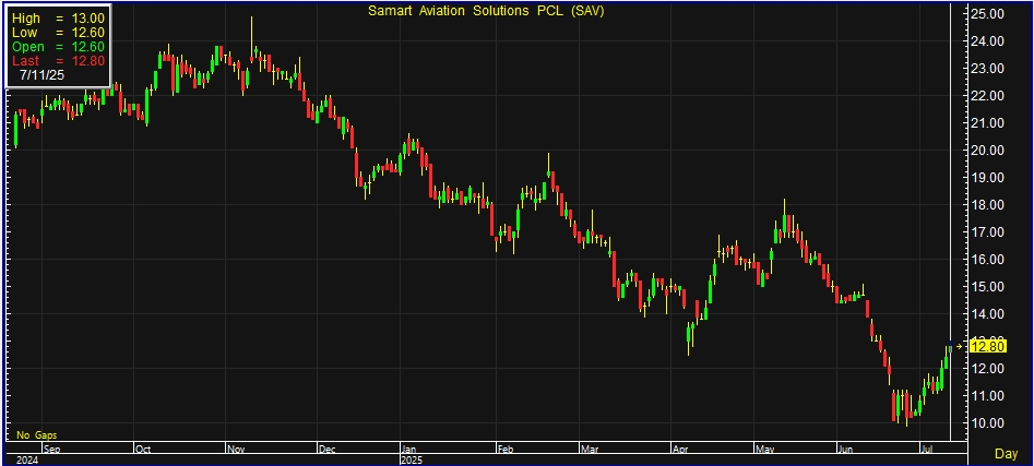 อัพเดต 11 ก.ค. 2568 เวลา 03.59 น. • เผยแพร่ 11 ก.ค. 2568 เวลา 03.53 น. • ข่าวหุ้นธุรกิจออนไลน์ผู้สื่อข่าวรายงานว่า วันนี้ (11 ก.ค.68) ราคาหุ้น บริษัท สามารถ เอวิเอชั่น โซลูชั่นส์ จำกัด (มหาชน) หรือ SAV ณ เวลา 10:43 น. อยู่ที่ระดับ 12.80 บาท บวก 0.40 บาท หรือ 3.23 บาท สูงสุดที่ระดับ 13 บาท ต่ำสุดที่ระดับ 12.60 บาท ด้วยมูลค่าการซื้อขาย 3.07 ล้านบาท