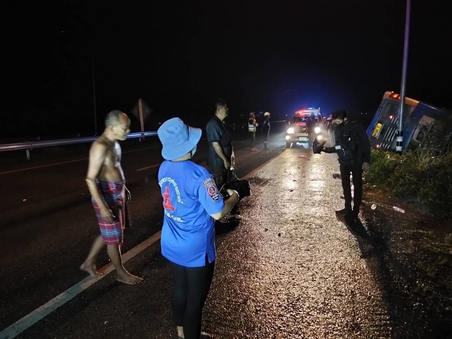 รถทัวร์ กรุงเทพ-สมุย ตกข้างทาง ผู้โดยสารเจ็บอื้อ สาเหตุยังไม่แน่ชัด