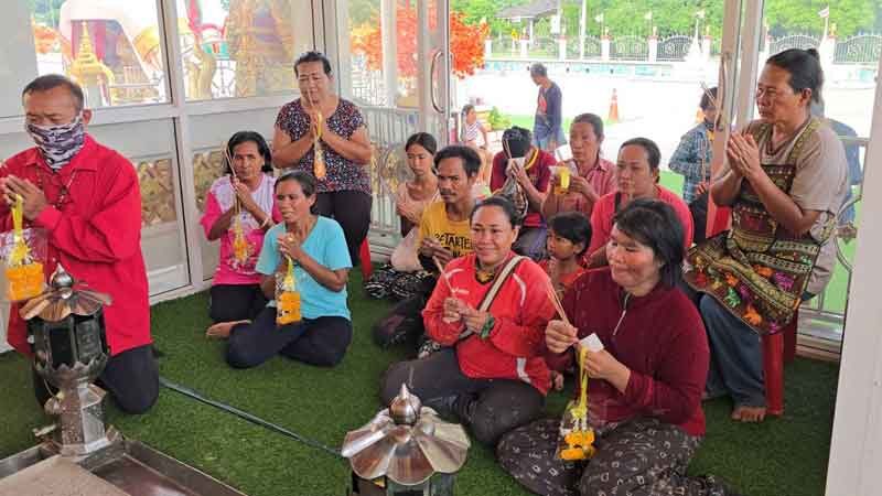 อีกทั้งยังมีชาวบ้านกว่า 10 คนกำลังถือประทัดจำนวน 30,000 นัดพร้อมด้วย สลากกินแบ่งรัฐบาลคนละชุดจำนวน 10 ใบ พร้อมดอกไม้ธูปเทียนเข้าไปกราบไหว้หลวงพ่อใหญ่ภายในวิหาร โดยแต่ละคนถูกเลขท้าย 2 ตัว และ 3 ตัว คนละ 10 ใบ