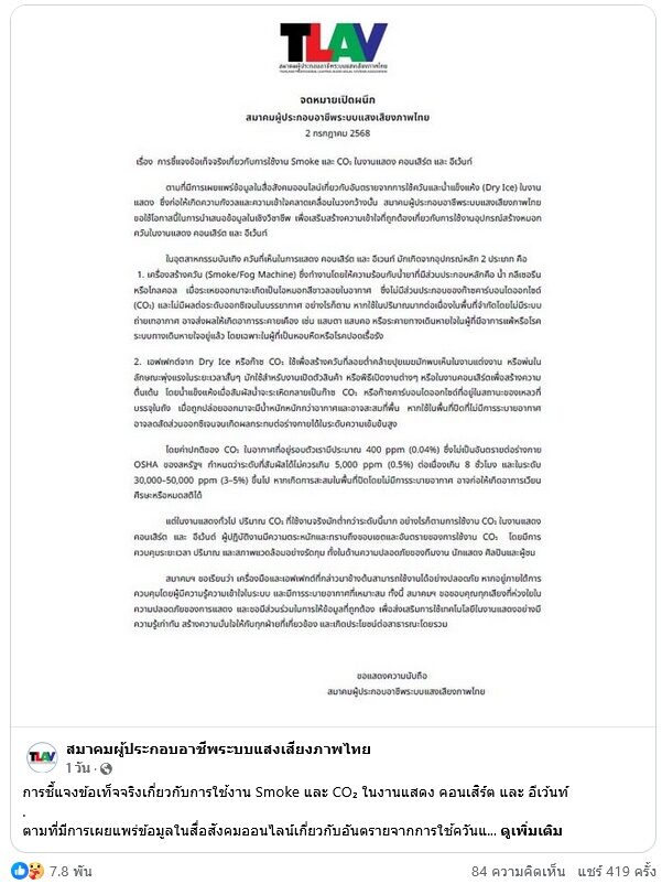 เลยอยากขอใช้โอกาสนี้ ในการแชร์ บอกต่อความเข้าใจ กับคนที่รักการมาดูคอนเสิร์ตไปเลย ว่า Dry Ice และ Smoke คืออะไร และต่างกันยังไง ผ่านเพจสมาคมเลยนะคะ”