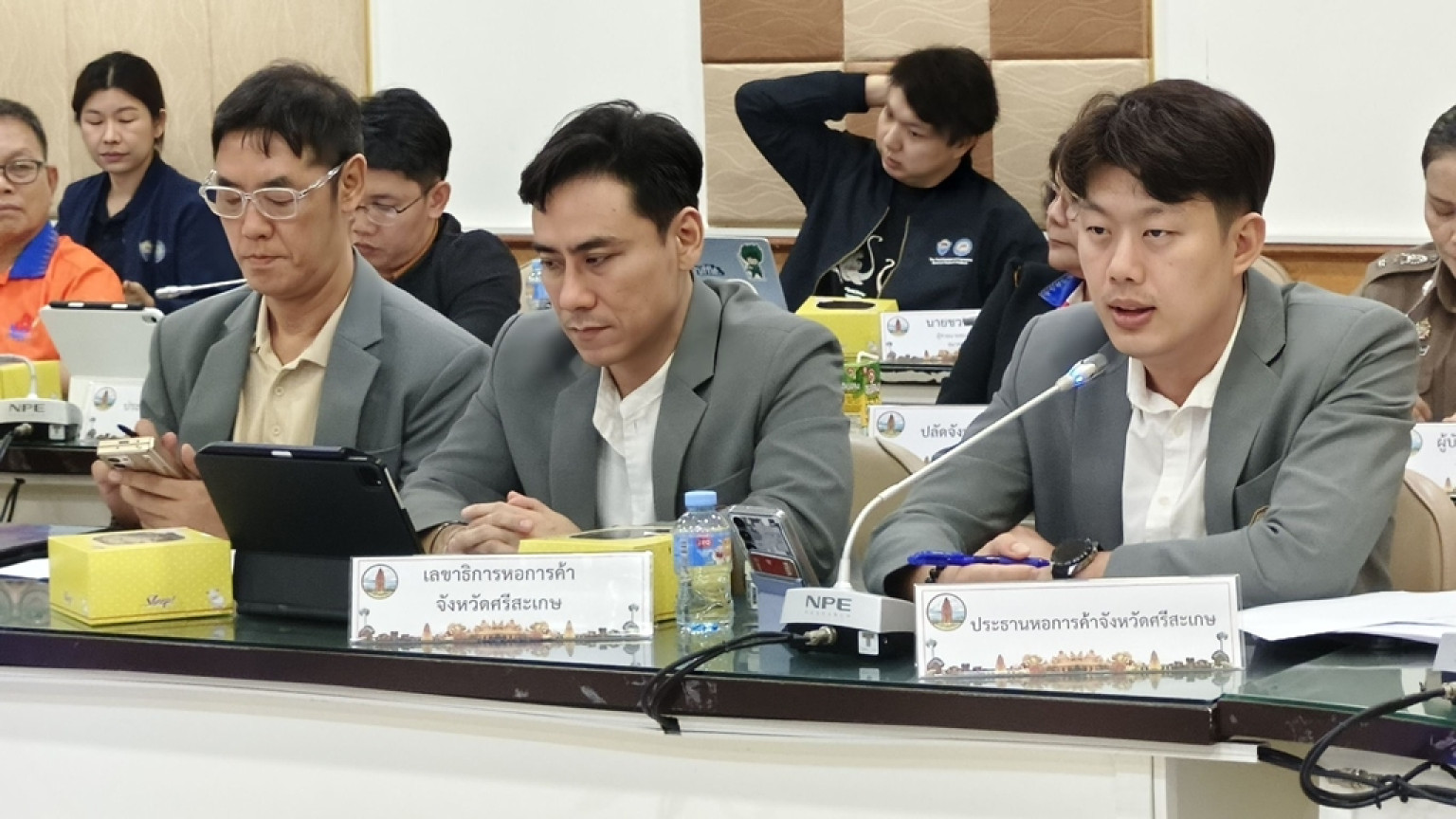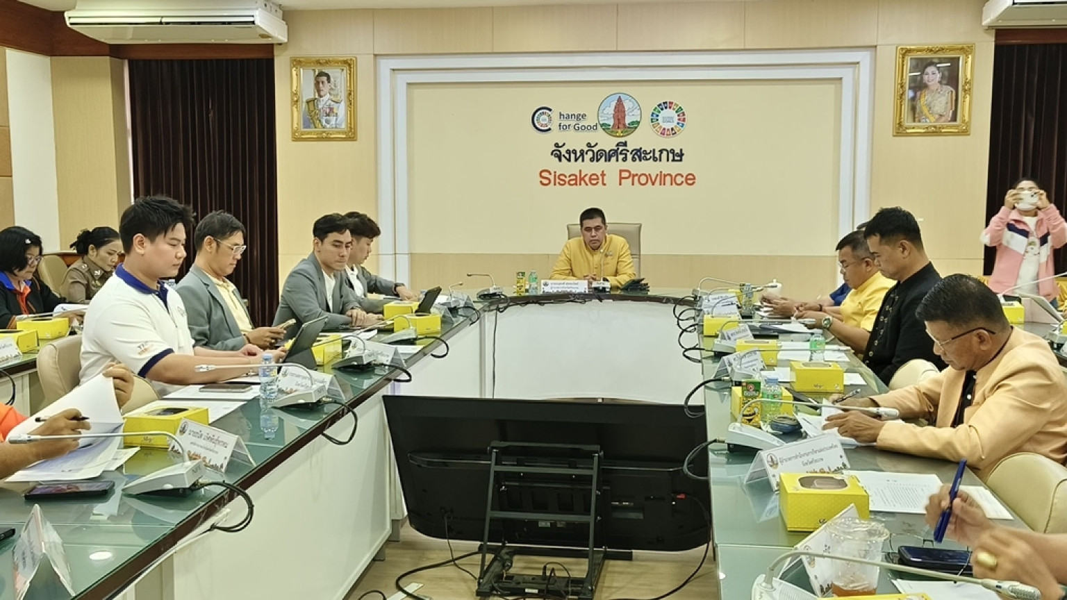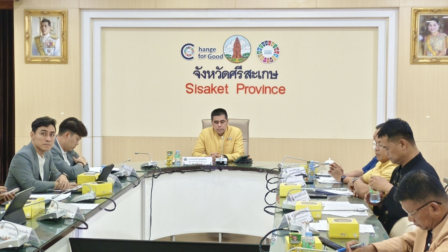 วันที่ 3 ก.ค. 2568 ที่ห้องประชุมสระกำแพงใหญ่ ชั้น 4 ศาลากลางจังหวัดศรีสะเกษ นายอนุพงศ์ สุขสมนิตย์ ผวจ.ศรีสะเกษ เป็นประธานเปิดการประชุมคณะทำงานโครงการอวดเมือง อวดจังหวัด ผ่านงานเทศกาล 2568 ตามโครงการเพิ่มขีดความสามารถผู้จัดเทศกาลไทย ผู้สร้างสรรค์เทศกาลไทยสู่เวทีนานาชาติ ประจำปีงบประมาณ 2568 เพื่อเตรียมความพร้อมในการประกวดรอบต่อไป โดยมี นายธาตรี สิริรุ่งวณิช รอง ผวจ.ศรีสะเกษ นายพนัส จันทร์คำ หัวหน้าสำนักงานจังหวัดศรีสะเกษ นายประหยัด ถิลา วัฒนธรรมจังหวัดศรีสะเกษ นำหัวหน้าส่วนราชการ ทั้งภาครัฐ ภาคเอกชน และหน่วยงานที่เกี่ยวข้องร่วมกิจกรรม โอกาสนี้ ดร.กัลยาณี ธรรมจารีย์ นายกสมาคมส่งเสริมเครือข่ายการท่องเที่ยวจังหวัดศรีสะเกษ มอบหมายให้ นายพิสิษฐ์ สิริวิริยะธนา กรรมการสมาคมฯ ร่วมประชุมด้วย
