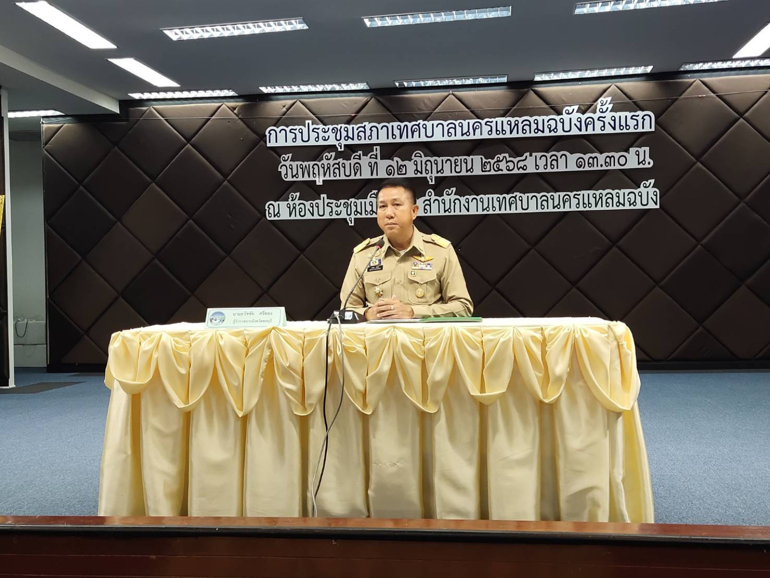วันที่ 12 มิถุนายน 2568 ที่ห้องประชุมเมืองท่า เทศบาลนครแหลมฉบัง อ.ศรีราชา จ.ชลบุรี นายธวัชชัย ศรีทอง ผู้ว่าราชการจังหวัดชลบุรี เป็นประธานในพิธีจุดธูปเทียนบูชาพระรัตนตรัย และประดับเครื่องหมายอินทรธนู ให้กับนายกเทศมนตรี รองนายกฯ คณะผู้บริหาร และสมาชิกสภาเทศบาลนครแหลมฉบัง ทั้ง 4 เขต ตามลำดับ พร้อมมอบนโยบายและกล่าวเปิดประชุมสภา ทั้งนี้ผู้ว่าราชการจังหวัดชลบุรี ได้ร่วมแสดงความยินดีกับนางจินดา ถนอมรอด นายกเทศมนตรีนครแหลมฉบัง ในครั้งนี้ด้วย