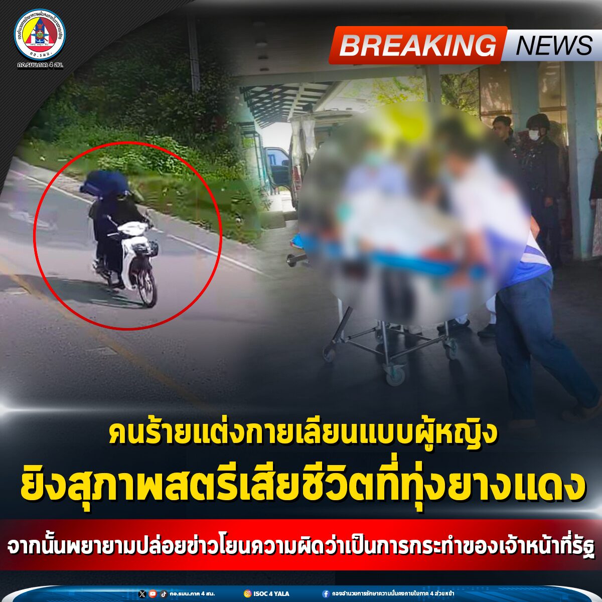 คนร้ายแต่งกายเลียนแบบหญิง บุกยิง 2 สาว ที่ทุ่งยางแดง เสียชีวิต 1 บาดเจ็บ 1 ซ้ำพยายามปล่อยข่าว โยนความผิดว่าเป็นการกระทำของเจ้าหน้าที่รัฐ