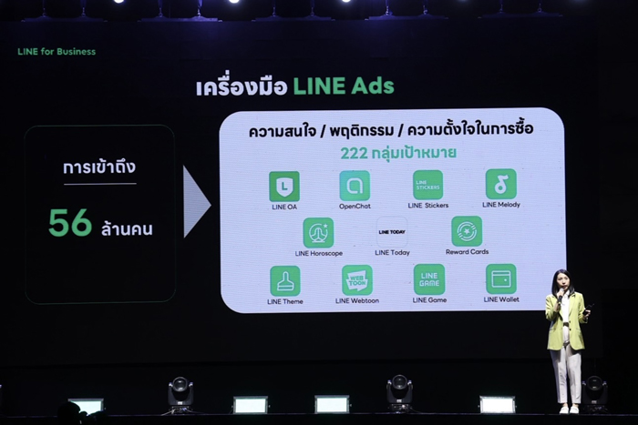 1. สร้างการมองเห็น ขยายฐานคนรู้จักแบรนด์ ผ่านโซลูชัน LINE Ads ระบบโฆษณาแบบประมูลบน LINE ช่วยเข้าถึงผู้ใช้งานกว่า 56 ล้านคนทันทีที่เปิดแอปฯ และเพิ่มเพื่อนได้เร็วกว่าที่เคย พร้อมส่งลูกค้าต่อไปยัง LINE Official Account โดยไม่ตกหล่น การยิงโฆษณาสามารถตั้งเป้าเจาะกลุ่มเฉพาะได้ลึกถึง 222 กลุ่มตามพฤติกรรม ความสนใจและความตั้งใจซื้อ ผ่านตำแหน่งโฆษณาที่หลากหลาย ครอบคลุมถึง 8 ตำแหน่งใน LINE ซึ่งระบบจะวิเคราะห์ประมวลผลตำแหน่งตามโจทย์ที่แบรนด์กำหนดไว้ให้ โดยไม่จำกัดงบขั้นต่ำ