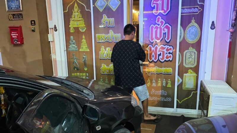 หนุ่มขับวีออส พุ่งชนร้าน "โอ๊ต ตังมา" เซียนพระดัง ก่อนวางมวยเดือด