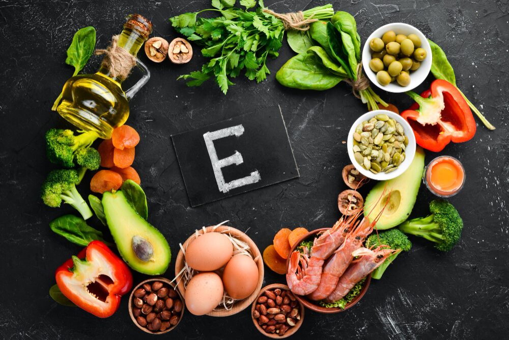 วิตามิน E เป็นสารต้านอนุมูลอิสระ ที่ช่วยปกป้องเซลล์ในร่างกายจากความเสียหายที่เกิดจากการสัมผัสกับฝุ่น PM 2.5 โดยเฉพาะเซลล์ที่มีความไวต่ออนุมูลอิสระ เช่น เซลล์ของผิวหนังและปอด วิตามิน E ช่วยลดการอักเสบและเสริมสร้างการทำงานของระบบภูมิคุ้มกันให้มีประสิทธิภาพมากยิ่งขึ้น คุณสามารถได้รับวิตามิน E จากอาหาร เช่น อัลมอนด์, เมล็ดทานตะวัน และน้ำมันมะกอก