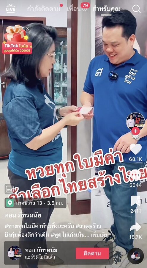 เมื่อวันที่ 11 เม.ย.66 กระแสแรงต่อเนื่อง สำหรับละครคุณธรรม จากพรรคไทยสร้างไทย โดยเฉพาะ ตอน 'หวยไม่ถูก ไทยสร้างไทยช่วยได้' โดยมี "ทอม" นายภัทรดนัย ใหม่พระเนต ผู้สมัคร ส.ส. กทม. เขต 13 เบอร์12 ร่วมนำเสนอนโยบาย กับคุณหญิงสุดารัตน์ เกยุราพันธุ์ หัวหน้าพรรคไทยสร้างไทย ที่สอดแทรกนโยบาย ตรงใจประชาชน จนยอดวิวผู้ชม ใน Facebook Reel ยอดสูงสุดในวงการการเมืองไทย ณ เวลานี้ 7.8 ล้านวิว ยอดแชร์มากที่สุด 23,500 กว่าครั้ง และยอดคอมเมนต์ สูงที่สุด 11,800 กว่าข้อความ
