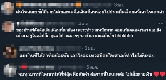 ทั้งนี้หลายคนชื่นชม ฟลุ๊ค กะล่อน เนื่องจากเป็นเงินเดือนที่ถูกต้อง เพราะผู้ช่วยของฟลุ๊คทำงานหนักมาก ต้องทำคอนเทนต์ตลอดเวลา ดูแลจิปาถะมาก ๆ เมื่อภาระงานเยอะ ก็ควรได้รับค่าตอบแทนที่สมน้ำสมเนื้อที่ทุ่มเทไป