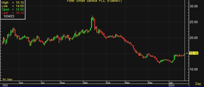 ล่าสุดราคาหุ้น FSMART ปรับตัวขึ้นคาดว่านักลงทุนเข้ามาเก็งกำไรจากบริษัทมีประเด็นบวกใหม่เข้ามาโดยเฉพาะการขยายแผนธุรกิจหวังเติบโตแข็งแกร่งในอนาคต