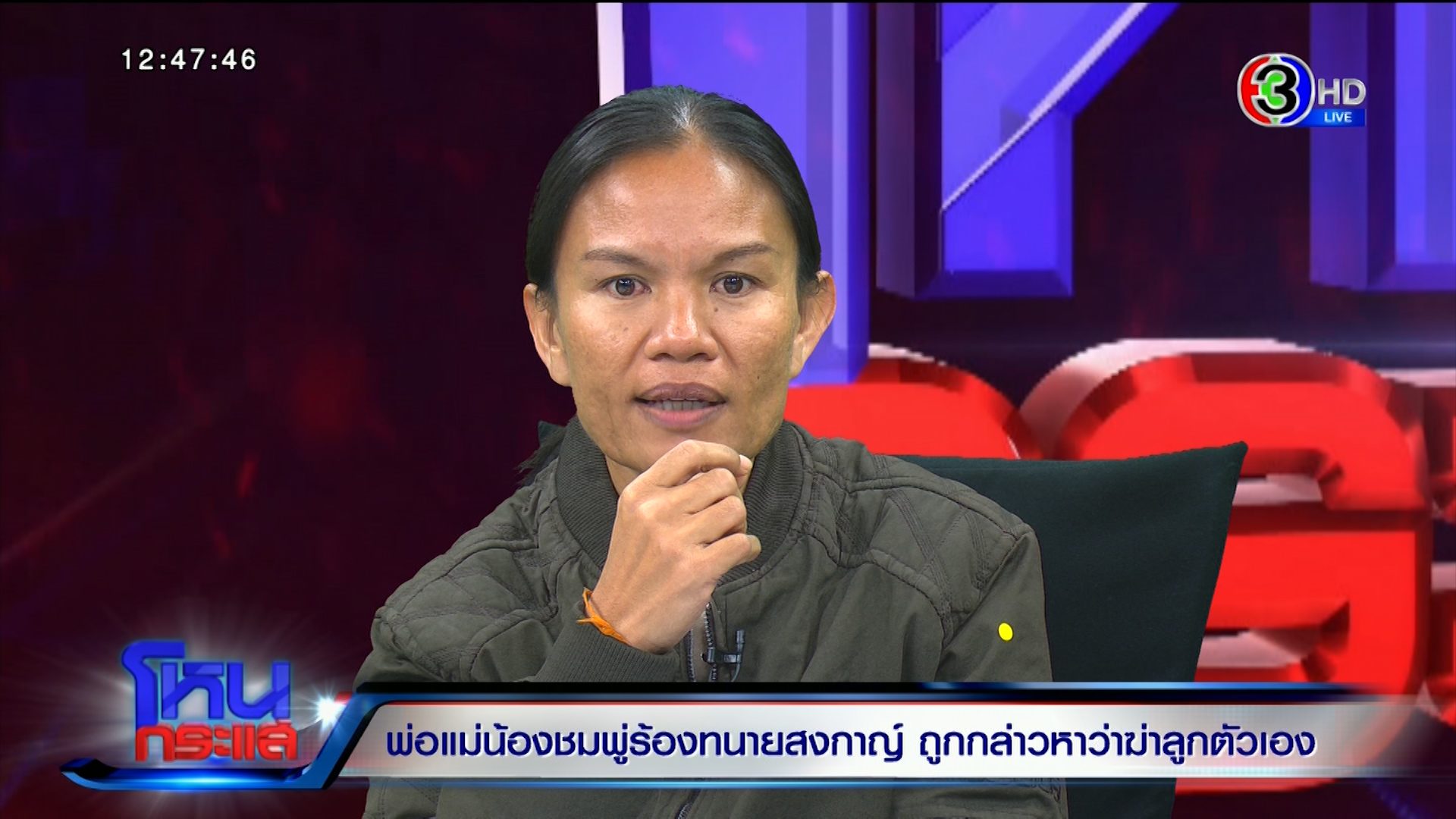 รายการโหนกระแสวันที่ 30 พ.ย. "หนุ่ม กรรชัย กำเนิดพลอย" ในฐานะผู้ดำเนินรายการ ผลิตในนามบริษัท ดีคืนดีวัน จำกัด ออกอากาศทุกวันจันทร์-ศุกร์ เวลา 12.35 น. ทางช่อง 3 กดเลข 33 ได้สัมภาษณ์ แม่สาวิตรี, พ่ออนามัย และ น้าแต พ่อแม่และน้า "น้องชมพู่" ซึ่งเสียชีวิตปริศนามานานถึง 7 เดือน ยังจับตัวฆาตกรไม่ได้ ตอนนี้พ่อแม่สุดทนแล้ว ออกมาร้องขอความเป็นธรรม ถูกกล่าวหาฆ่าลูก ขณะที่น้าแตโดนขู่ฆ่า โดยมาพร้อม "ทนายสงกาญ์ อัจฉริยะทรัพย์" กรรมการปฏิรูปประเทศด้านกระบวนการยุติธรรม