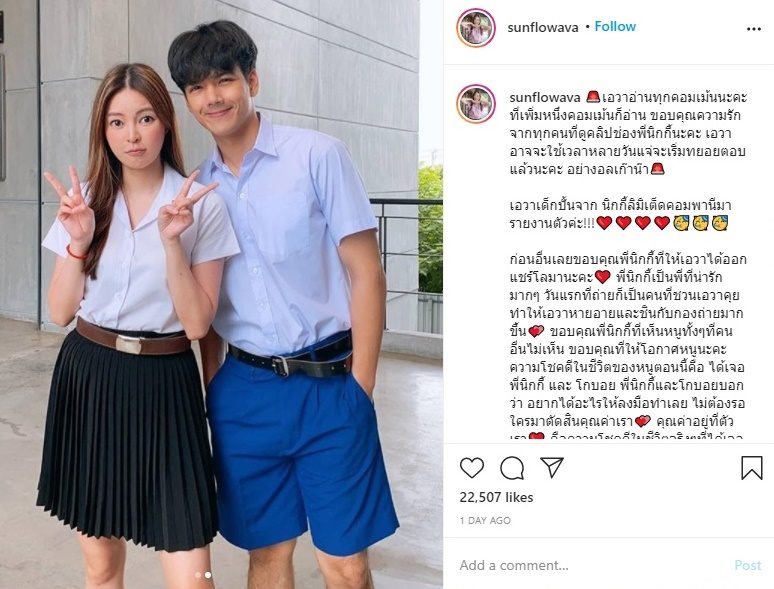 ขอบคุณจากใจ เอวาได้อ่านหมดแล้ว ขอบคุณที่ชอบเอวาและพี่นิกกี้นะคะ เอวาจะทําทุกหน้าที่ให้ดีที่สุด อยากมาอยู่จุดนี้นานแล้ว เอวาเป็นเพียงนักแสดงตัวเล็กๆแต่จะทําให้ดีที่สุดในทุกบทบาท ใครอยากจ้างเล่น เอ็มวี เล่นละคร ซีรีย์ได้นะคะ ไม่ได้เงินก็เล่นค่ะ555555