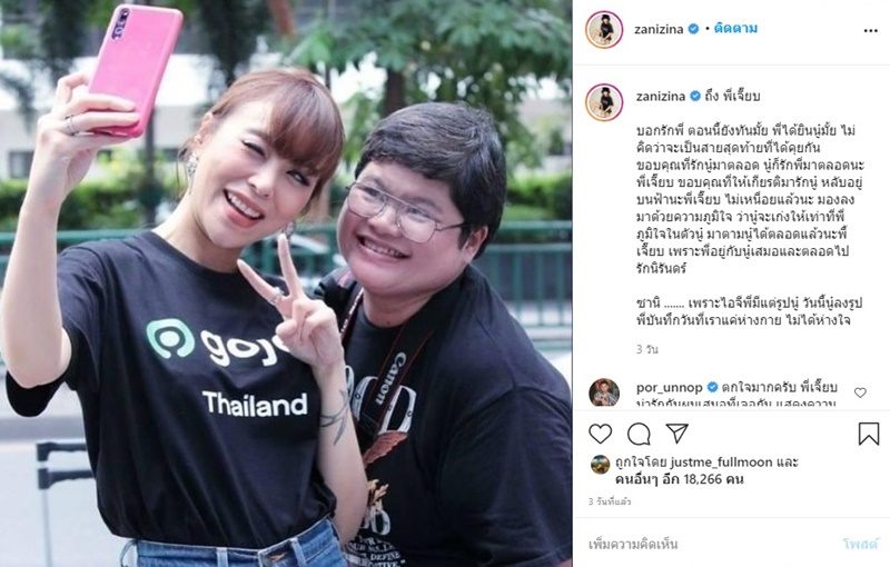 ไม่คิดว่าจะเป็นสายสุดท้ายซานิ เอเอฟ หรือ ซานิ นิภาภรณ์ ช็อกเลยโพสต์ถึงพี่เจี๊ยบสุดอาลัยแฟนคลับที่ติดตามกันมาตลอดว่า “ถึง พี่เจี๊ยบ บอกรักพี่ ตอนนี้ยังทันมั้ย พี่ได้ยินนู๋มั้ย ไม่คิดว่าจะเป็นสายสุดท้ายที่ได้คุยกัน ขอบคุณที่รักนู๋มาตลอด นู๋ก็รักพี่มาตลอดนะพี่เจี๊ยบ ขอบคุณที่ให้เกียรติมารักนู๋ หลับอยู่บนฟ้านะพี่เจี๊ยบ ไม่เหนื่อยแล้วนะ มองลงมาด้วยความภูมิใจ ว่านู๋จะเก่งให้เท่าที่พี่ภูมิใจในตัวนู๋ มาตามนู๋ได้ตลอดแล้วนะพี้เจี๊ยบ เพราะพี่อยู่กับนู๋เสมอและตลอดไป รักนิรันดร์ ซานิ ……. เพราะไอจีพี่มีแต่รูปนู๋ วันนี้นู๋ลงรูปพี่บันทึกวันที่เราแค่ห่างกาย ไม่ได้ห่างใจ”