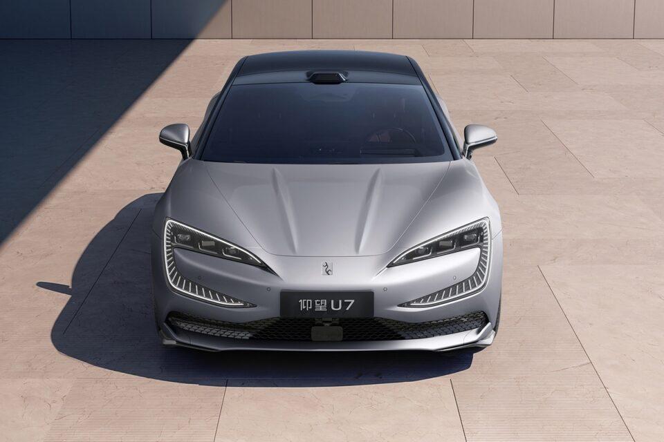 YANGWANG U7 มาในร่างเก๋งซีดานขนาดใหญ่ไว้ฟาดฟันกับ XIAOMI SU7 โดดเด่นด้วยหน้าตาคล้ายกับรุ่น U9 ตั้งแต่ไฟหน้า LED รูปตัว C พร้อมเส้นสายที่ลากยาวไปตั้งแต่ฝากระโปรงหน้าที่ลาดเอียง กระจังหน้าทรงทึบติดตราโลโก้ในชุดกันชนหน้าที่มีช่องระบายอากาศแบบตาข่ายพร้อมเรดาร์อัลตราโซนิกติดตั้งอยู่ พร้อม หลังคารถสีดำมีเซนเซอร์ LiDAR จาก RoboSense