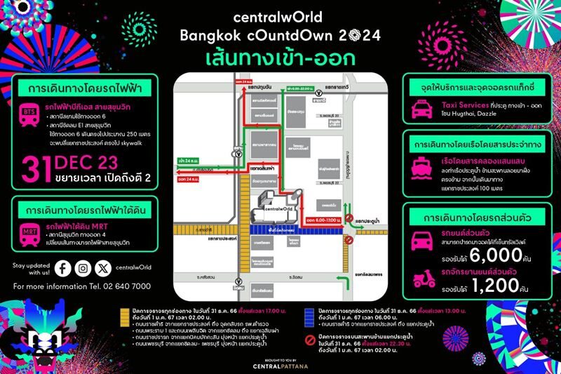เช็กก่อนเดินทาง แผนเปิดปิดจราจรงาน centralwOrld Bangkok Countdown 2024