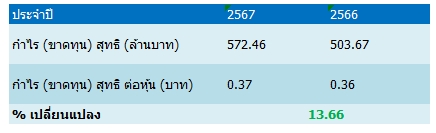 อย่างไรก็ตาม กำไรสุทธิของปี 67 เพิ่มขึ้นร้อยละ 13.53 เมื่อเทียบกับปีก่อนหน้า ซึ่งเป็นอัตราการเติบโตที่สูงกว่าการเพิ่มขึ้นของรายได้ โดยปัจจัยสนับสนุนหลักมาจากการรับงานโครงการบำรุงรักษาที่มีอัตรากำไรขั้นต้นสูงกว่างานขายสินค้า นอกจากนี้ บริษัทฯ ยังมีรายได้ทางการเงินเพิ่มขึ้นจากการถือครองเงินสดจำนวนมาก ซึ่งได้รับจากการใช้สิทธิตามใบสำคัญแสดงสิทธิในการเพิ่มทุน รวมถึงได้รับอัตราดอกเบี้ยเงินฝากที่สูงขึ้นจากสถาบันการเงิน และดอกเบี้ยจากลูกหนี้ที่ชำระเงินล่าช้า ส่งผลให้รายได้ทางการเงินเติบโตขึ้นอย่างมีนัยสำคัญ