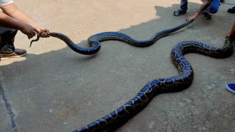 นายบุญธรรม อนุสิทธิ์ หัวหน้าทีมงานอสรพิษ (ภาคตะวันออก) มูลนิธิกู้ภัยอรัญประเทศ นำทีมงานและอุปกรณ์ลงพื้นที่จุดที่ได้รับการประสาน ทราบว่า งูดังกล่าวเป็นงูหลาม ตัวใหญ่มาก กอดรัดกันอยู่ถึง 8 ตัว โดยใช้เครื่องมือในการจับงู เข้าไปดำเนินการและสามารถจับงูใส่ถุงปุ๋ยได้ทั้งหมด