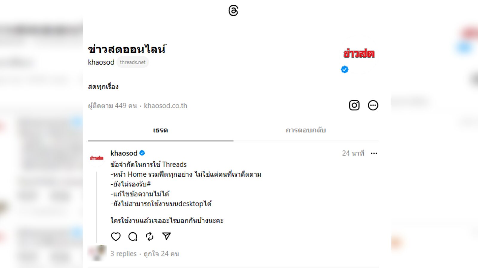 ส่วนใครที่ไม่อยากพลาดข่าวฮิตติดกระแส ทางข่าวสดเราที่มีบัญชีเธรดส์ด้วยนะ สามารถติดตามได้ที่ ข่าวสดออนไลน์ มาติดตามกันเยอะ ๆ นะ