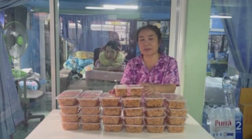มีค่าใช้จ่ายตลอด หลายรายการด้วยใช่ไหม? “มีต้องได้ซื้อ ต้องได้จ่ายทุกวัน ไม่มีวันไหนที่ไม่ได้จ่ายเลย ถามว่าตอนนี้แม่หารายได้จากทางไหน แม่เย็บพรมเช็ดเท้าค่ะ ทำหมี่กรอบสูตรโบราณ หากมีใครอยากอุดหนุนแม่อุดหนุนได้นะคะ ทางเพจ แม่น้องอ๊อฟธนกฤต ลำพูน เข้ามาดูได้นะคะ แม่ก็เอาจักรมาไว้เย็บหน้าห้องเลย เวลาว่างๆ ก็จะออกมาเย็บ