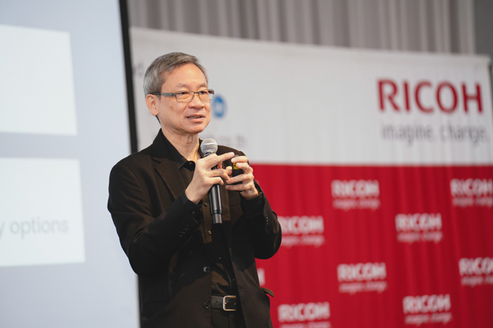 ต่อด้วยการเปิดตัว RICOH Cloud & AI Solutions โดย คุณศรีกรุง เจริญกรวิจิตร ประธานเจ้าหน้าที่ฝ่ายเทคโนโลยีของริโก้ ซึ่งแนะนำ “Cloud, AI และ Data-centric Organization” กับ 3 โซลูชันหลัก ได้แก่