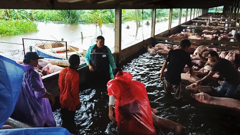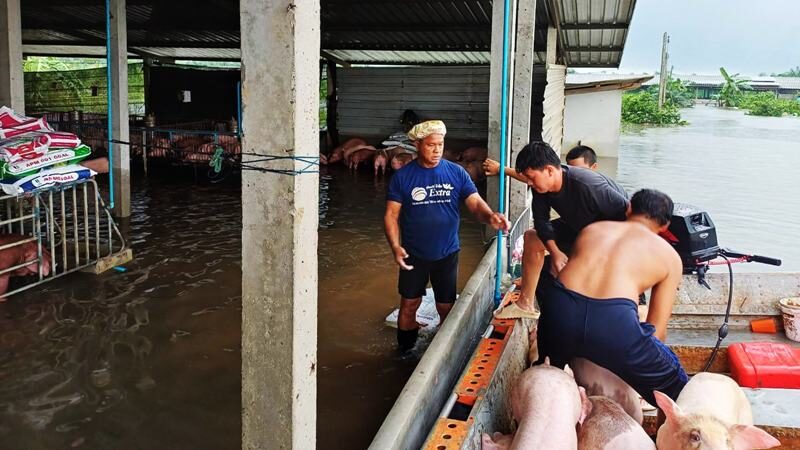 พัทลุงน้ำท่วมสูง เร่งช่วยฟาร์มหมูรายใหญ่ภาคใต้ ขนย้ายหมูมากกว่า 500 ตัว และแม่พันธุ์มากกว่า 50 ตัว หนีน้ำไปไว้ในที่ปลอดภัย