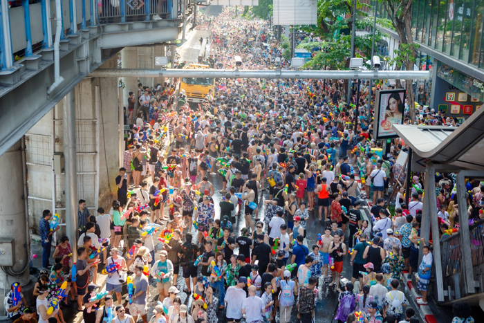 ขณะที่หัวมุมถนนสีลม 'สีลมเอจ' ‘Global Destination' จุดหมายหลักของการเล่นน้ำสงกรานต์ที่ถูกจับตามองจากคนทั่วโลก เต็มไปด้วยนักท่องเที่ยวทั้งชาวไทยและชาวต่างชาติ ที่มาร่วมเฉลิมฉลองด้วยความสนุกสนาน การผนึกกำลัง 2 ฟีลลิง 2 แยกหัวมุมถนนพระรามสี่ ไม่เพียงแต่ขยายฐานลูกค้าได้กว้างขึ้น แต่เรายังพกความพร้อมมาแบบขั้นสุด ทั้งสิ่งอำนวยความสะดวก จุดเติมน้ำสะอาดฟรี โซนเป่าแห้ง บริการห้องอาบน้ำ และการเดินทางที่สะดวกสบาย เพื่อตอกย้ำว่าเราคือเดสติเนชันแห่งการเล่นน้ำที่เข้าใจและ ตอบโจทย์อินไซต์อย่างแท้จริง"