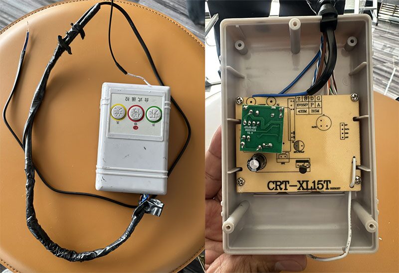 ผลการตรวจสอบอาคารดังกล่าวที่อยู่ติดกับปั๊มน้ำมัน พบอุปกรณ์ควบคุมรักษาความปลอดภัยอัตโนมัติ ซึ่งเป็นระบบควบคุมประตูรั้วบ้าน ไม่มีชื่อรุ่น ปรากฏอักษรจีน ติดตั้งอยู่บนชั้น 5 ของอาคาร มีการแพร่สัญญาณในย่านความถี่ 433.85 MHz และมีความแรงสัญญาณประมาณ -26.7 dBm ซึ่งอุปกรณ์ดังกล่าวอยู่ในสภาพชำรุดและมีลักษณะอาจก่อให้เกิดการรบกวนต่อรีโมทรถจักรยานยนต์ในบริเวณโดยรอบ